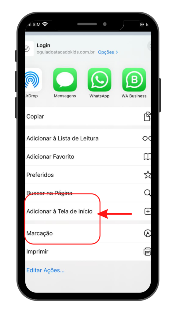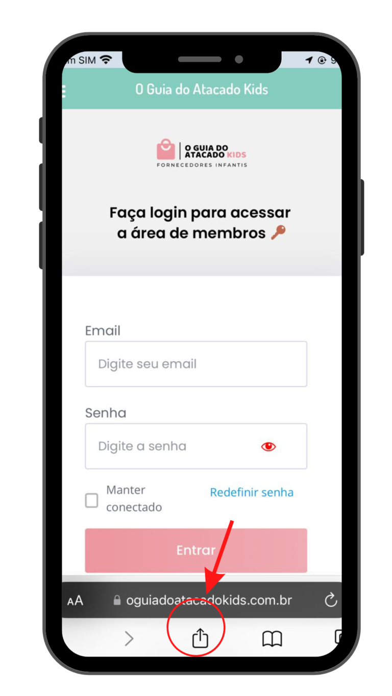 Copie e cole o link abaixo no navegador Safari do seu celular e clique na seta de compartilhamento que aparece na parte inferior do seu celular.